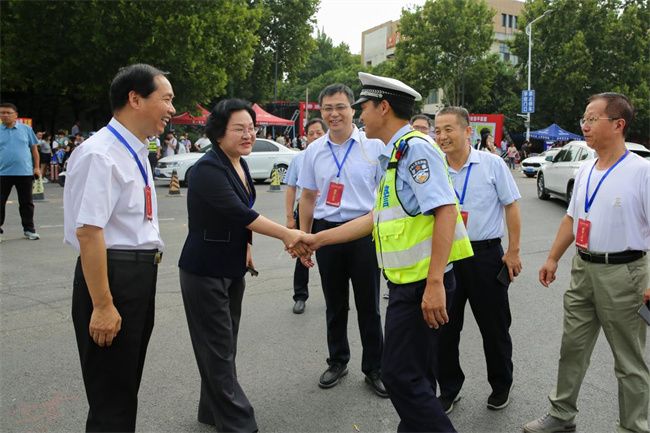 校領(lǐng)導(dǎo)慰問并感謝在校門口執(zhí)勤管制疏導(dǎo)交通的滎陽交警