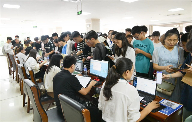 在工作人員的引導下完成報到手續(xù)
