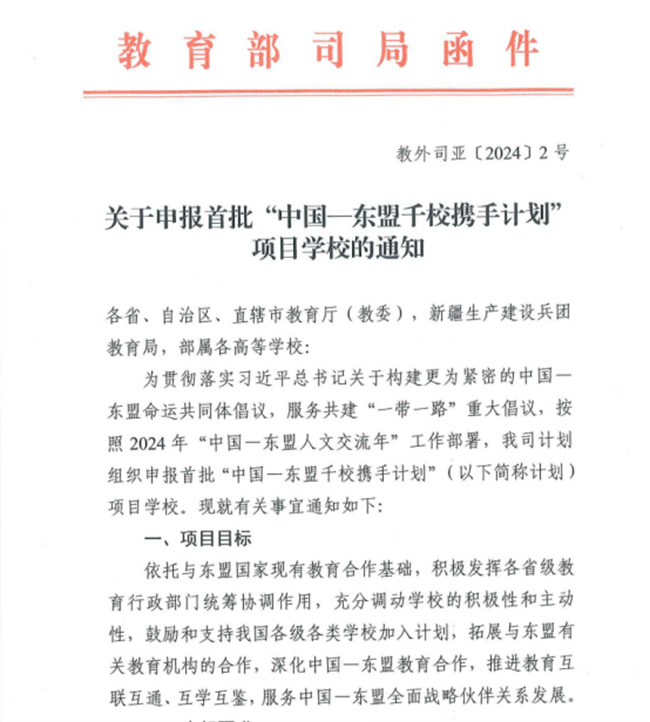 中新河南網(wǎng)9月10日電 根據(jù)教育部發(fā)布的《關(guān)于申報首批“中國—東盟千校攜手計劃”項目學(xué)校的通知》(教外司亞【2024】2號),鄭州職業(yè)技術(shù)學(xué)院成功入選教育部首批“中國—東盟千校攜手計劃”項目學(xué)校。