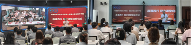 河南建筑職業(yè)技術(shù)學(xué)院(右)-塔里木職業(yè)技術(shù)學(xué)院(左)同步課堂啟動(dòng)儀式現(xiàn)場(chǎng)