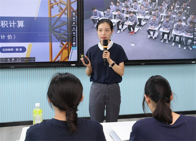 工程造價(jià)教研室主任韓雪為兩校學(xué)生講授《建筑工程計(jì)量與計(jì)價(jià)》課程