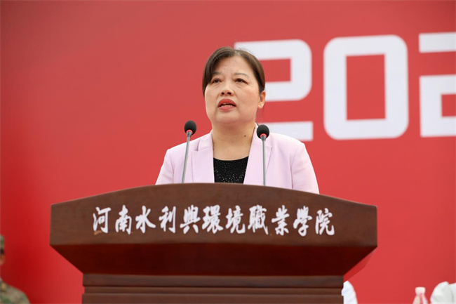 校長李志萍代表學(xué)校向新同學(xué)表示熱烈歡迎,表示從今天起,大家將以“水環(huán)人”的身份開啟人生嶄新篇章,成為“明責(zé)、守信、敬業(yè)、力行”校訓(xùn)的踐行者和傳承者,希望同學(xué)們努力學(xué)習(xí),苦練本領(lǐng),不負(fù)青春韶華,不負(fù)時代重任,不負(fù)國家重托。