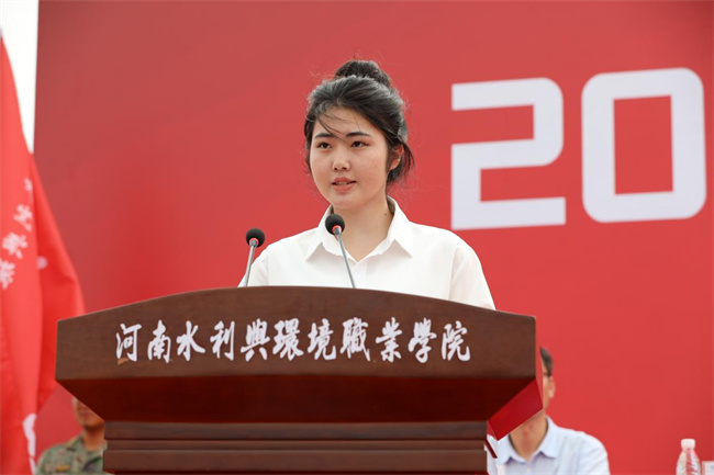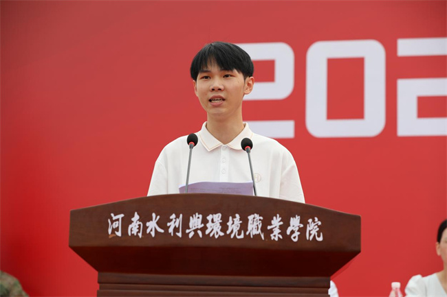 2024級水利工程系水建1班李俊杰、機(jī)電工程系機(jī)械工程師3班邢遠(yuǎn)欣作為新生代表發(fā)言,向?qū)W校、領(lǐng)導(dǎo)、老師表達(dá)了感謝,表示期待在水環(huán)學(xué)院接受知識的洗禮,學(xué)習(xí)如何做人做事做學(xué)問,志存高遠(yuǎn),腳踏實地,努力成長為社會棟梁。