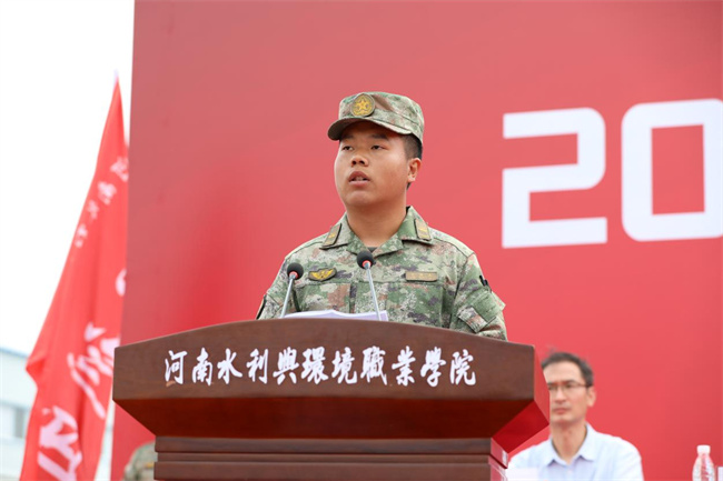 2024級土木工程系造價2班程萌萌、信息工程系數(shù)媒3班賈柯作為軍訓(xùn)學(xué)生代表承諾,全體參訓(xùn)同學(xué)將尊重教官、尊重師長,服從命令、聽從指揮,嚴(yán)格要求、刻苦訓(xùn)練,以軍人的標(biāo)準(zhǔn)嚴(yán)格要求自己,努力完成各項任務(wù)。