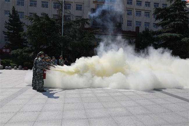 工作人員點(diǎn)燃了演習(xí)火堆,同學(xué)們依次領(lǐng)取滅火器,有序進(jìn)行滅火演練。伴隨著滅火干粉的噴出,火堆也被熄滅,同學(xué)們的滅火技能也得到了很好的鍛煉。