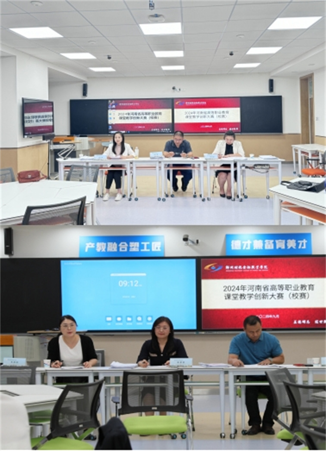 學(xué)校黨委高度重視本次課堂教學(xué)創(chuàng)新大賽,特邀河南經(jīng)貿(mào)職業(yè)學(xué)院劉正君、河南交通職業(yè)技術(shù)學(xué)院薛雯霏、鄭州旅游職業(yè)學(xué)院陳凌凌、河南農(nóng)業(yè)職業(yè)學(xué)院陳星星、鄭州鐵路職業(yè)技術(shù)學(xué)院蔣會(huì)哲以及河南交通職業(yè)技術(shù)學(xué)院王亞瓊等6位國(guó)賽教學(xué)能力比賽獲獎(jiǎng)教師及相關(guān)專(zhuān)家擔(dān)任評(píng)委。