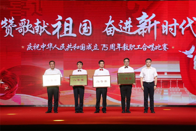 75年櫛風沐雨,75年高歌奮進。整場比賽氣氛熱烈,高潮迭起,現(xiàn)場時時響起熱烈的掌聲。經(jīng)過激烈角逐,機關合唱一隊、文化創(chuàng)意學院和建筑與環(huán)境工程學院合唱隊榮獲一等獎;自動化與物聯(lián)網(wǎng)學院和信息工程與大數(shù)據(jù)學院合唱隊、軌道交通工程學院和生命健康學院合唱隊、新能源汽車學院合唱隊、財經(jīng)與金融管理學院和新材料工程學院合唱隊榮獲二等獎;機關合唱二隊和繼續(xù)教育學院合唱隊、馬克思主義學院合唱隊、智能制造學院合唱隊、電子商務學院合唱隊、體育學院合唱隊榮獲三等獎。黨委宣傳部、校工會榮獲優(yōu)秀組織獎,校團委、文化創(chuàng)意學院榮獲突出貢獻獎。