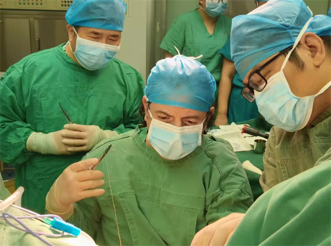 新聞發(fā)布會結(jié)束后,Ali Ahmed Shafik(沙菲克)教授和相關(guān)醫(yī)學(xué)專家到病房進(jìn)行了查巡。隨后,由Ali Ahmed Shafik(沙菲克)教授主刀做了一臺“教課書式的手術(shù)”,通許第一醫(yī)院的泌尿外科及婦科醫(yī)護(hù)人員現(xiàn)場學(xué)習(xí)觀摩,在場的每一位醫(yī)護(hù)人員都受益匪淺。