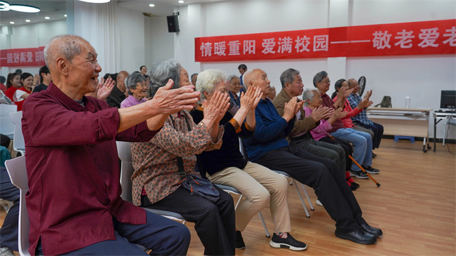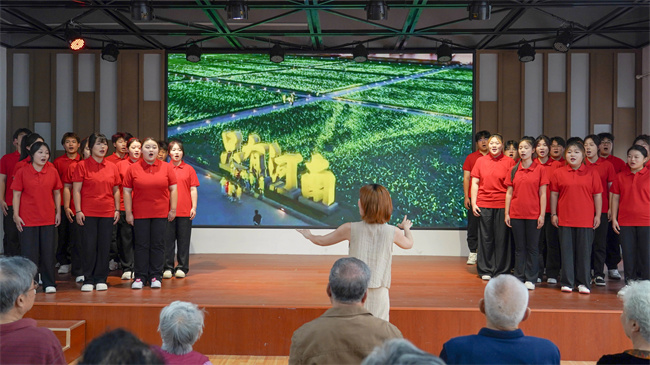 校團(tuán)委、藝術(shù)系組織師生編排歌曲、舞蹈等節(jié)目,充分展現(xiàn)師生的才藝與風(fēng)采,進(jìn)一步豐富了退休教師的文化生活,營造出歡樂祥和的氛圍。退休教師茹良勤吹奏紅色傳統(tǒng)歌曲,增強(qiáng)了學(xué)生愛黨、愛祖國、愛社會主義的堅定信念。
