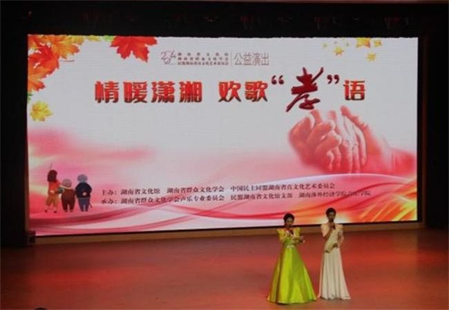 中新河南網(wǎng)10月15日電(徐花 張湘 黃雷鳴) 為弘揚(yáng)中華傳統(tǒng)美德,深入推進(jìn)學(xué)校“黨建+學(xué)生素質(zhì)教育五項工程”之思想品德工程,10月11日,湖南涉外經(jīng)濟(jì)學(xué)院音樂學(xué)院在音樂樓實驗劇場,舉行了以“情暖瀟湘、歡歌‘孝’語”為主題的重陽節(jié)演出,此次演出由湖南省文化館、湖南省群眾文化學(xué)會、中國民主同盟湖南省直文化藝術(shù)委員會主辦,湖南省群眾文化學(xué)會聲樂專業(yè)委員會、民盟湖南省文化館支部、湖南涉外經(jīng)濟(jì)學(xué)院音樂學(xué)院承辦,校內(nèi)外眾多領(lǐng)導(dǎo)、專家蒞臨演出現(xiàn)場。
