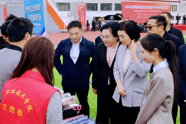 與會(huì)領(lǐng)導(dǎo)參觀鄭州職業(yè)技術(shù)學(xué)院反邪教協(xié)會(huì)設(shè)立的宣傳展位