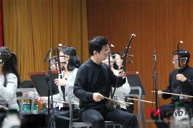 演出特意加入具有河南特色的民族管弦樂曲《豫調(diào)》,以河南民歌和戲曲音樂為素材并吸收民間鑼鼓節(jié)奏特點創(chuàng)作而成,激發(fā)出在座師生對“老家河南”的深厚感情。