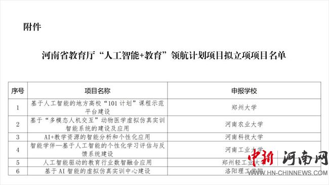河南省“人工智能+教育”領(lǐng)航計劃項目是為了積極響應(yīng)國家關(guān)于加快教育現(xiàn)代化、建設(shè)教育強國的戰(zhàn)略要求,深入探索人工智能技術(shù)在高等教育領(lǐng)域的創(chuàng)新應(yīng)用,促進教育教學(xué)模式的深度變革與治理能力的提升,鼓勵廣大教師積極擁抱人工智能技術(shù),在教育教學(xué)中先行先試,形成一批有價值的資源、案例、應(yīng)用,為教育數(shù)字化轉(zhuǎn)型下好“先手棋”。