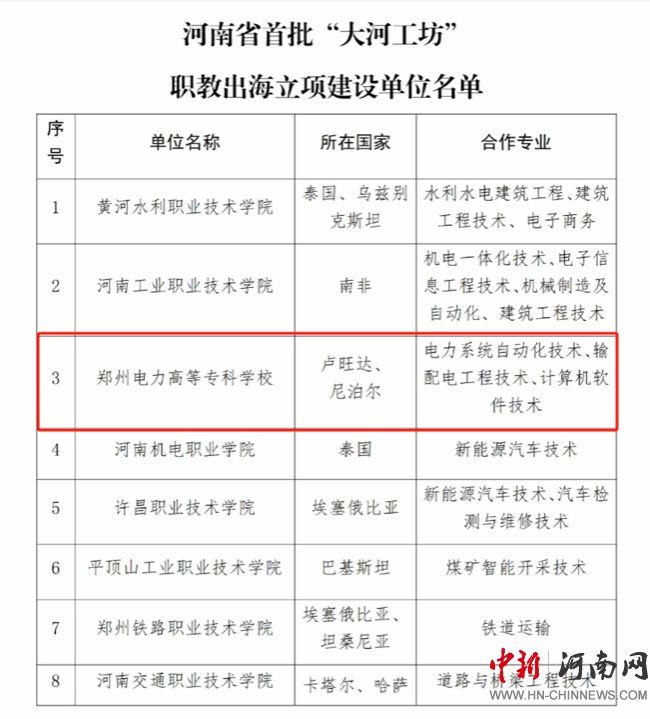 鄭州電力高等專科學校喜獲河南省首批“大河工坊”職教出海立項建設單位