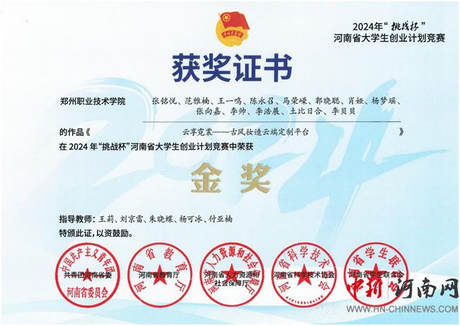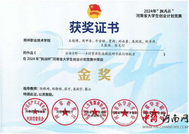 “挑戰(zhàn)杯”河南省大學生創(chuàng)業(yè)計劃競賽是由共青團河南省委、河南省教育廳、河南省人力資源和社會保障廳、河南省科學技術(shù)協(xié)會、河南省學生聯(lián)合會主辦的一項具有導向性、示范性、實踐性和群眾性的創(chuàng)業(yè)交流活動,每兩年舉辦一屆。本屆賽事立足貫徹創(chuàng)新、協(xié)調(diào)、綠色、開放、共享的新發(fā)展理念,共設科技創(chuàng)新和未來產(chǎn)業(yè)、鄉(xiāng)村振興和農(nóng)業(yè)農(nóng)村現(xiàn)代化、生態(tài)文明建設和綠色低碳發(fā)展、文化創(chuàng)意和區(qū)域交流合作、社會治理和公共服務共5個組別。自大賽啟動以來,鄭州職業(yè)技術(shù)學院黨委高度重視,由校團委牽頭聯(lián)合校內(nèi)相關(guān)部門,對大賽進行了廣泛宣傳、精心組織,各二級學院師生積極參與,參賽項目的選題和質(zhì)量都有了較大提升。經(jīng)過二級學院初審、學校復審及終審等環(huán)節(jié),共選拔出15個項目參與省級競賽,在完成報送指標的同時,賽事的五個組別均有項目參與競爭。其中,5個項目進入省級決賽,報送的全部15個項目均獲得省級獎項。
