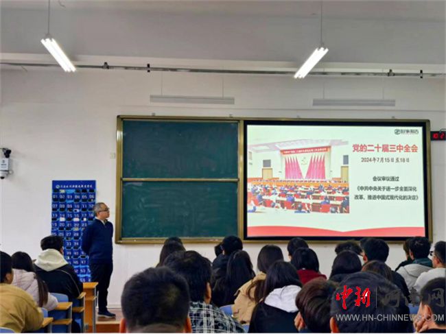 11月18日,校黨委委員、副校級干部趙廣杰到水利工程系為學生講授黨的二十屆三中全會精神專題思政課。
