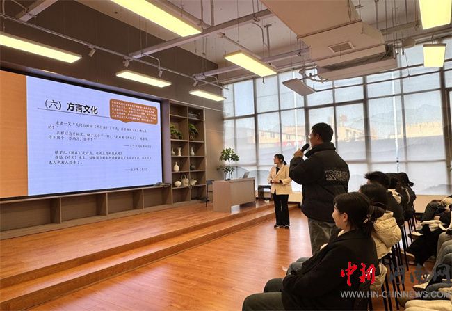 講座內(nèi)容豐富詳實(shí),從開封的飲食文化、體育文化、書法文化,到戲曲文化、技藝文化、方言文化乃至民俗文化,面面俱到,如同一幅徐徐展開的歷史文化長(zhǎng)卷。同學(xué)們沉浸其中,全身心投入,不時(shí)與董老師積極互動(dòng)。當(dāng)談及開封方言文化時(shí),開封籍學(xué)生踴躍登臺(tái),以地道的開封方言展示本土語言的獨(dú)特韻味,贏得了全場(chǎng)師生的熱烈掌聲,將講座氣氛推向高潮。此次講座不僅有效拓寬了學(xué)生們的文化視野,提升了他們的審美素養(yǎng),更點(diǎn)燃了在開封求學(xué)的大學(xué)生們對(duì)這座城市文化的強(qiáng)烈認(rèn)同感、歸屬感與自豪感。它宛如一顆文化的火種,為開封文化在校園內(nèi)外的傳承、普及與推廣注入了新的活力,在弘揚(yáng)與傳播開封文化的道路上留下了堅(jiān)實(shí)而深刻的腳印。