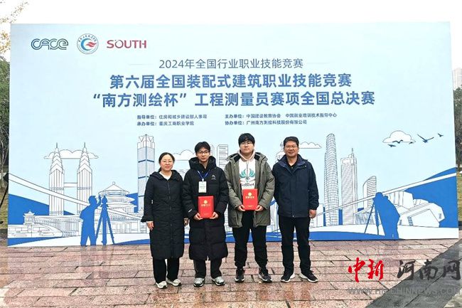 中新河南網12月6日電(張浩哲) 11月28日-12月1日,2024年全國行業(yè)職業(yè)技能競賽第六屆全國裝配式建筑職業(yè)技能競賽“南方測繪杯”工程測量員賽項全國總決賽,在重慶工商職業(yè)學院成功舉行。本次競賽吸引了來自全國20所院校的40名選手參加,河南測繪職業(yè)學院由測繪工程系副主任柴炳陽擔任領隊,徐如意、張浩哲擔任指導老師,史正、焦秋碩兩名學生參賽,經過為期兩天的激烈角逐,最終榮獲三等獎2項。