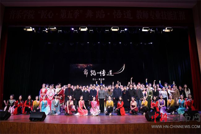 作為音樂學(xué)院“金師培育工程”重要內(nèi)容之一,“匠心”是音樂學(xué)院力促青年教師專業(yè)技能提升的一個品牌,旨在展現(xiàn)教師的專業(yè)風(fēng)采和教學(xué)基本功,同時為學(xué)生起到引領(lǐng)和示范作用。本季演出以《舞蹈.悟道》為主題,巧妙地以一位即將退休舞蹈教師的學(xué)習(xí)與從教經(jīng)歷為主線,通過“聞道”“問道”“悟道”“傳道”四大篇章,生動地描繪了舞者的成長軌跡與教師的工匠精神,宛如一部精彩紛呈的藝術(shù)傳記。演出涵蓋了多種舞蹈形式,從古典優(yōu)雅到現(xiàn)代動感,從民族風(fēng)情到創(chuàng)意新編,全方位展現(xiàn)了教師扎實的專業(yè)功底和豐富的藝術(shù)表現(xiàn)力。