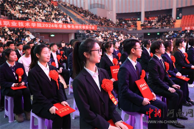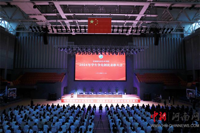 中新河南網(wǎng)12月17日電(張亞麗) 12月12日,濟(jì)源職業(yè)技術(shù)學(xué)院2024年學(xué)生爭先創(chuàng)優(yōu)表彰大會(huì)在高新校區(qū)大學(xué)生文體活動(dòng)中心隆重召開。學(xué)校黨委書記王四戰(zhàn)、校長王磊等全體班子成員出席會(huì)議,相關(guān)職能部門、各二級學(xué)院負(fù)責(zé)人、全體輔導(dǎo)員以及獲得各項(xiàng)表彰獎(jiǎng)勵(lì)的學(xué)生代表及全校學(xué)生代表3000余人參加大會(huì)。大會(huì)由黨委副書記王向軍主持。