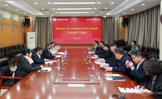 中新河南網(wǎng)12月17日電(文/樊鑫鈺 圖/蔡雨) 12月13日,馬來西亞林肯大學學院校長阿米亞一行應邀訪問河南醫(yī)學高等?茖W校(以下簡稱該校),雙方就藥學專業(yè)合作辦學事宜進行了深入交流。會議在圖文信息中心八樓第一會議室舉行。校長孫韜出席會議并講話,副校長李建豐主持會議。
