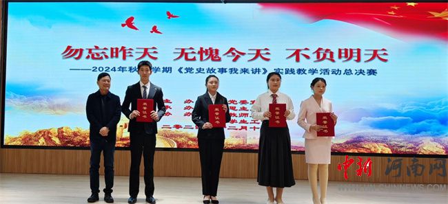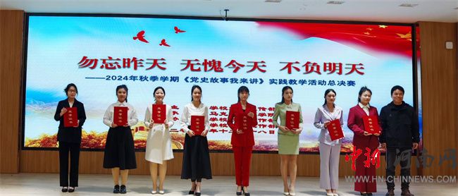 中新河南網(wǎng)12月20日電 12月18日,開封文化藝術(shù)職業(yè)學(xué)院思政課實(shí)踐教學(xué)活動(dòng)《黨史故事我來講》2024年秋季學(xué)期總決賽在四號報(bào)告廳舉行。校長何新出席,黨委副書記王森,組織統(tǒng)戰(zhàn)部長王國昌參加活動(dòng)并為選手頒獎(jiǎng),馬克思主義學(xué)院全體教師和各院部學(xué)生代表近200人現(xiàn)場觀看。