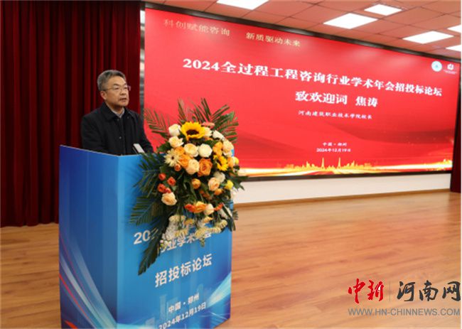 河南建筑職業(yè)技術(shù)學(xué)院校長焦?jié)職g迎詞,向參加論壇的各位領(lǐng)導(dǎo)、嘉賓致以最熱烈的歡迎和最誠摯的問候。他表示,期待通過本次論壇,能夠匯聚各方力量,激發(fā)更多思想火花,共同探索招投標(biāo)領(lǐng)域的新趨勢(shì)、新挑戰(zhàn)與新機(jī)遇,為推動(dòng)全過程工程咨詢行業(yè)的繁榮發(fā)展,乃至整個(gè)建筑行業(yè)的轉(zhuǎn)型升級(jí)注入新的活力與動(dòng)力。