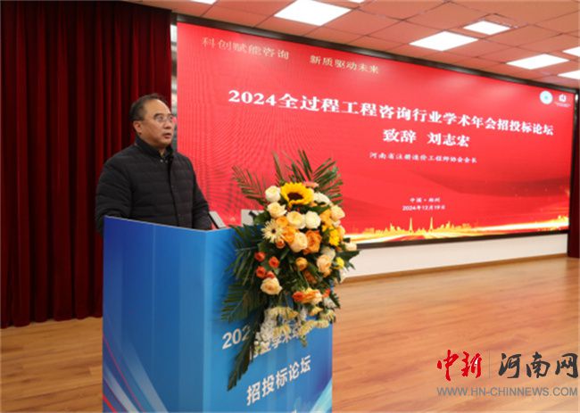 河南省注冊(cè)造價(jià)工程師協(xié)會(huì)會(huì)長劉志宏致辭。他指出,當(dāng)前全過程工程咨詢行業(yè)正面臨著前所未有的發(fā)展機(jī)遇和挑戰(zhàn),本次學(xué)術(shù)年會(huì)通過分享和展示行業(yè)所取得的最新成果,可以互相學(xué)習(xí)借鑒先進(jìn)經(jīng)驗(yàn)和技術(shù)成果,共同推動(dòng)全過程工程咨詢行業(yè)的持續(xù)健康發(fā)展。