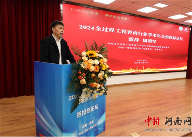 河南省全過程工程咨詢產(chǎn)業(yè)技術(shù)創(chuàng)新戰(zhàn)略聯(lián)盟輪值理事長、鄭州一建集團(tuán)有限公司董事長、黨委書記周明軍致辭。他指出,面對(duì)目前招投標(biāo)行業(yè)存在的問題與挑戰(zhàn),本次學(xué)術(shù)年會(huì)召開的意義重要而深遠(yuǎn)。相信通過這些精彩紛呈的學(xué)術(shù)報(bào)告、互動(dòng)討論,我們將從中獲得新的啟示和靈感,為推動(dòng)全過程工程咨詢行業(yè)的高質(zhì)量發(fā)展提供強(qiáng)大的智力支持和技術(shù)保障。