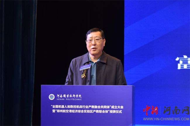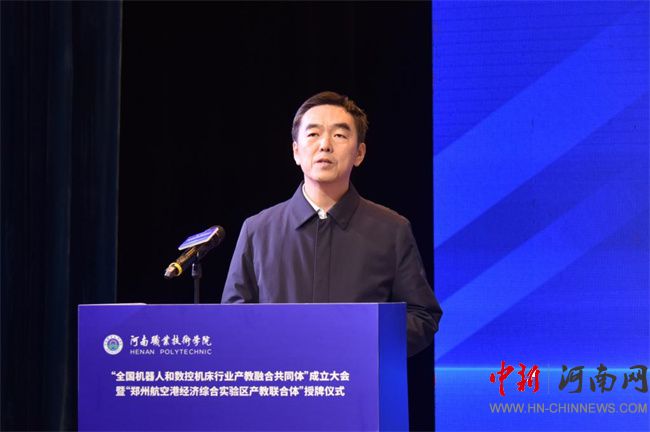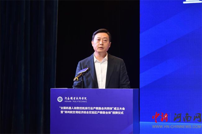 中新河南網(wǎng)12月21日電(鄧會敏) 12月19日上午,全國機(jī)器人和數(shù)控機(jī)床行業(yè)產(chǎn)教融合共同體成立大會暨鄭州航空港經(jīng)濟(jì)綜合實(shí)驗(yàn)區(qū)產(chǎn)教聯(lián)合體授牌儀式在河南職業(yè)技術(shù)學(xué)院(以下簡稱該校)舉行。河南省教育廳黨組成員、副廳長張國強(qiáng),河南省工業(yè)和信息化廳黨組成員、副廳長孫永民,機(jī)械工業(yè)教育發(fā)展中心主任陳曉明,鄭州大學(xué)黨委常委、副校長胡少偉,珠海格力智能裝備技術(shù)研究院有限公司副總經(jīng)理陳威,富士康科技集團(tuán)富聯(lián)裕展科技(河南)有限公司副總經(jīng)理張占武,鄭州航空港經(jīng)濟(jì)綜合實(shí)驗(yàn)區(qū)教育衛(wèi)生體育局副局長郭帥,河南省機(jī)器人與數(shù)控機(jī)床行業(yè)協(xié)會會長王濟(jì)昌等出席會議。該校黨委書記厲勵,黨委副書記、校長夏新顏等校領(lǐng)導(dǎo)班子成員,以及共同體、聯(lián)合體會員單位領(lǐng)導(dǎo)和代表近200人參加大會。大會分別由夏新顏和校黨委委員、副校長肖瓏主持。