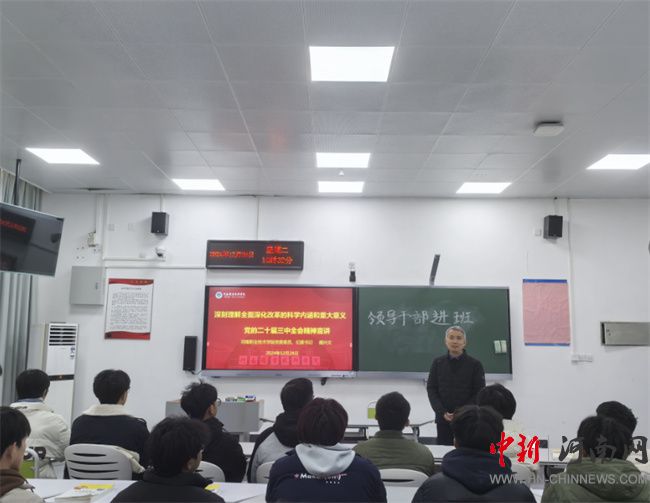 中新河南網(wǎng)12月26日電(石慧) 12月24日下午,河南職業(yè)技術(shù)學(xué)院黨委委員、紀(jì)委書記盛興文以《深刻理解全面深化改革的科學(xué)內(nèi)涵和重大意義》為題,為現(xiàn)代信息技術(shù)學(xué)院人工智能專業(yè)241班學(xué)生講授思政課,并進(jìn)行座談交流。