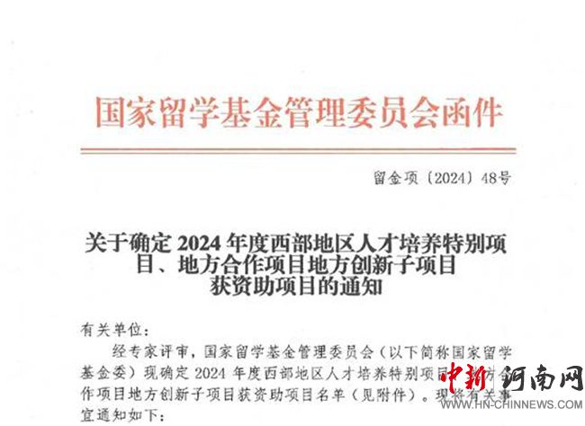 中新河南網(wǎng)12月30日電 近日,國家留學基金委公布2024年地方合作項目地方創(chuàng)新子項目獲資助項目名單,河南水利與環(huán)境職業(yè)學院與華北水利水電大學、黃河水利職業(yè)學院聯(lián)合申報的2024年度西部地區(qū)人才培養(yǎng)特別項目、地方合作項目地方創(chuàng)新子項目“河南省新時代治水國際化創(chuàng)新人才培養(yǎng)項目”成功獲批。該項目是河南省首個職業(yè)院校參與的國家留學基金委地方創(chuàng)新子項目,標志著河南水利與環(huán)境職業(yè)學院國際化辦學邁上新臺階。