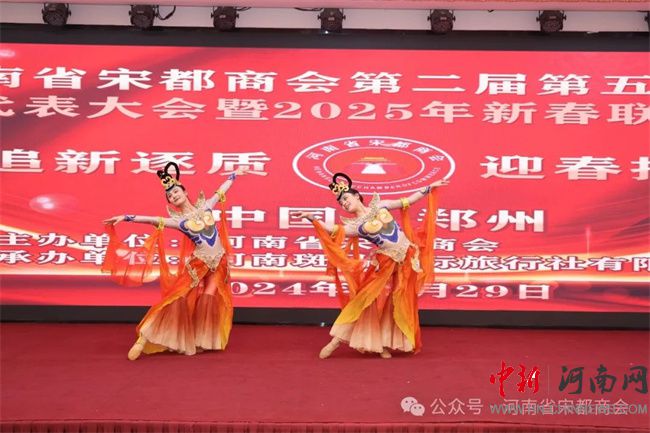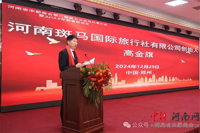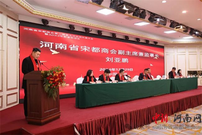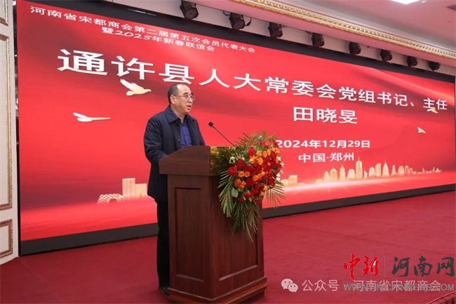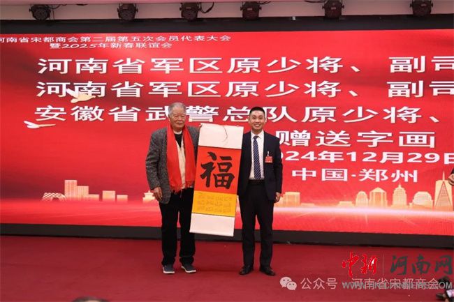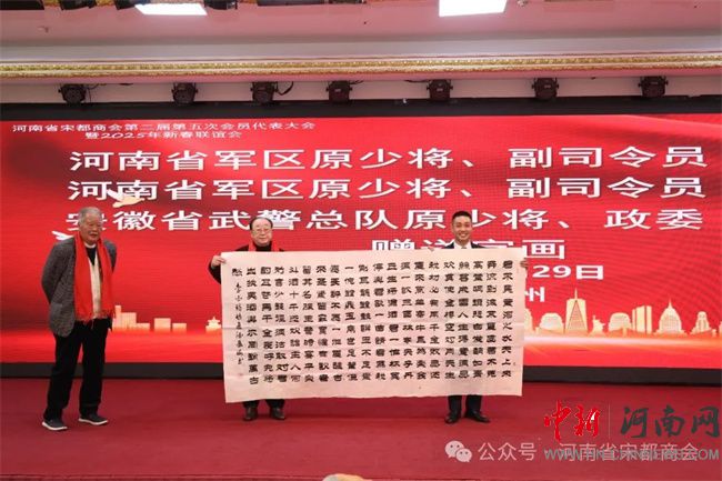 中新河南網(wǎng)12月31日電 2024年12月29日,河南省宋都商會第二屆第五次會員代表大會暨2025年新春聯(lián)誼會在鄭州盛世民航大酒店隆重舉行。河南省工商聯(lián)副主席馬躍峰,通許縣人大常委會主任田曉旻;河南省軍區(qū)原少將、副司令員王太順,河南省軍區(qū)原少將、副司令員楊鳳海,安徽省武警總隊原少將、副司令員馮文成;河南省人民政府資深參事、安陽市人民政府原副市長肖繼業(yè),信陽軍區(qū)原大校、副司令員張中廷,原北京軍區(qū)鄭州辦事處大校、主任李克俊,河南省總工會副主席黃健,河南省供銷社原副主任王清良,河南省直機關(guān)事務(wù)管理局副局長毛衛(wèi)豐;河南省發(fā)改委大項辦原主任張行忠、河南省監(jiān)獄管理局原獄政處長孫家合、鄭州市公安局十八里河分局原政委聶學(xué)鋒、河南省交通職業(yè)技術(shù)學(xué)院原副院長陳振峰以及社會各界精英會員代表等近300人參加會議。