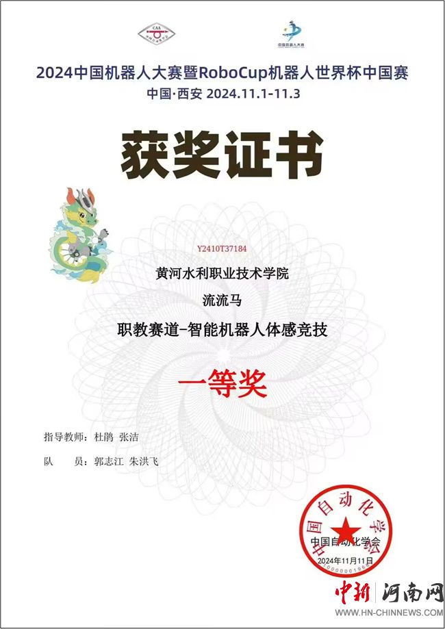黃河水利職業(yè)技術學院摘得2024中國機器人大賽智能機器人體感競技國賽一等獎1項