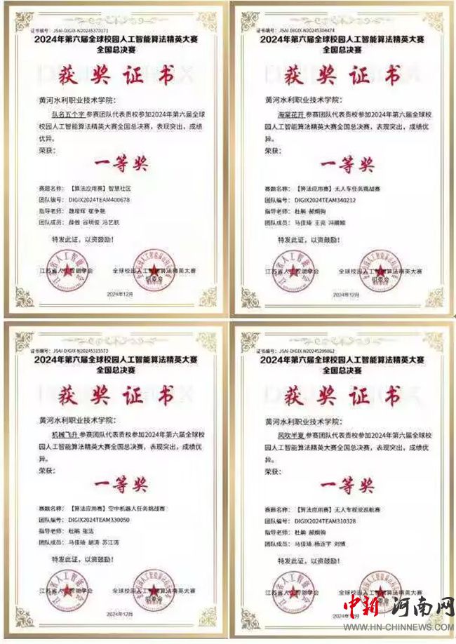 黃河水利職業(yè)技術學院摘得2024全球校園人工智能算法精英大賽全國總決賽一等獎4項