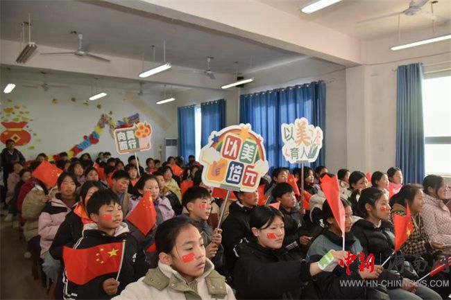 河南職業(yè)技術(shù)學(xué)院師生文化團(tuán)隊(duì)在舞陽(yáng)縣開(kāi)展美育藝術(shù)課堂活動(dòng)現(xiàn)場(chǎng)