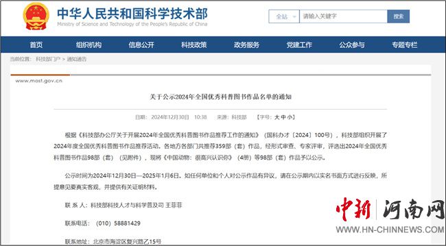 根據(jù)《科技部辦公廳關于開展2024年全國優(yōu)秀科普圖書作品推薦工作的通知》(國科辦才〔2024〕100號),科技部組織開展了2024年度全國優(yōu)秀科普圖書作品推薦活動。各地方各部門共推薦359部(套)作品,經(jīng)形式審查、專家評審,評選出2024年全國優(yōu)秀科普圖書作品98部(套)。科普圖書是科普工作的重要載體,對普及科學知識、弘揚科學精神、傳播科學思想發(fā)揮著不可替代的重要作用,而科研人員的專業(yè)性可以確保圖書的科學性,其獨有的研究經(jīng)歷可以帶給讀者更多的啟迪。今后,該校將鼓勵更多的教學科研人員投身科普工作,創(chuàng)作更多優(yōu)秀作品,以激勵青少年投身科學事業(yè),為推動全民科學素質提升貢獻力量。(黃河水利職業(yè)技術學院供稿)