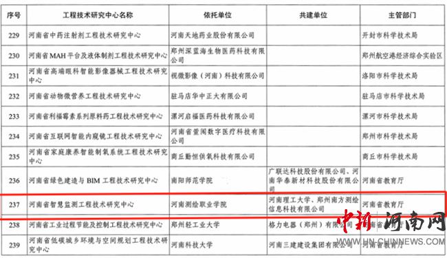 中新河南網(wǎng)1月10日電(張若蘭) 1月9日,河南省科技廳發(fā)布了《關(guān)于認定建設2024年度河南省工程技術(shù)研究中心名單的通知》(豫科實【2025】1號),河南測繪職業(yè)學院主持申報的《河南省智慧監(jiān)測工程技術(shù)研究中心》成功獲批立項,正式擁有了首個省級科研平臺,標志著河南測繪職業(yè)學院科研實力邁上新臺階。