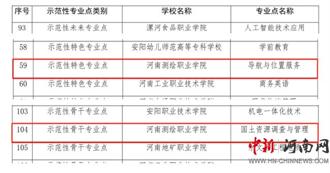 這一年,根據(jù)學(xué)校“十四五”規(guī)劃和重點(diǎn)任務(wù),進(jìn)一步強(qiáng)化了專業(yè)的定位和發(fā)展特色,國土資源調(diào)查與管理專業(yè)被評為2024年河南省職業(yè)教育示范性骨干專業(yè)點(diǎn),導(dǎo)航與位置服務(wù)專業(yè)被評為河南省職業(yè)教育示范性特色專業(yè)點(diǎn)。