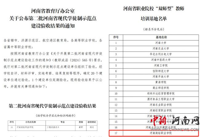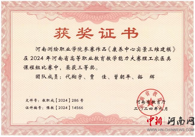 與南方測繪集團(tuán)共建元宇宙智能測繪實(shí)訓(xùn)中心;獲批2024年河南省職業(yè)教育示范性虛擬仿真實(shí)訓(xùn)基地;四人入選首批河南省職業(yè)教育教學(xué)指導(dǎo)委員會;獲批河南省職業(yè)院校“雙師型”教師培訓(xùn)基地。