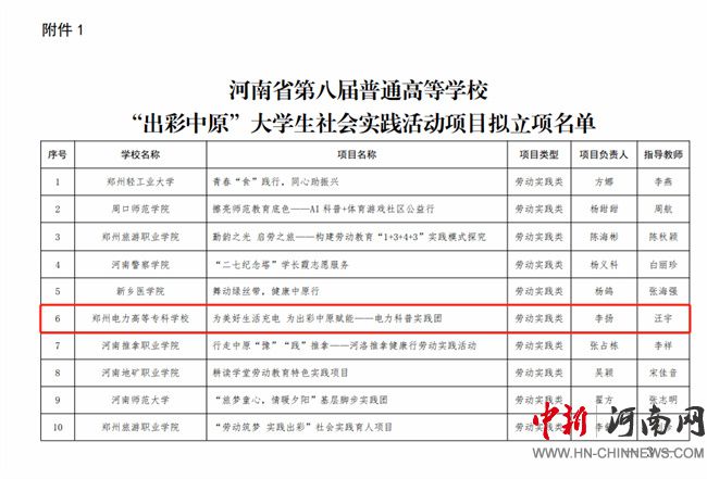 鄭州電力高等專科學(xué)校將以此次立項(xiàng)建設(shè)為契機(jī),緊緊圍繞國(guó)家戰(zhàn)略和服務(wù)地方經(jīng)濟(jì)社會(huì)發(fā)展,周密部署、統(tǒng)籌協(xié)調(diào),廣泛動(dòng)員學(xué)生參與社會(huì)實(shí)踐活動(dòng),著力打造示范效應(yīng)突出、社會(huì)影響廣泛的社會(huì)實(shí)踐活動(dòng)電專樣板,影響和帶動(dòng)更多大學(xué)生在社會(huì)的“大課堂”中受教育、長(zhǎng)才干、作貢獻(xiàn)。