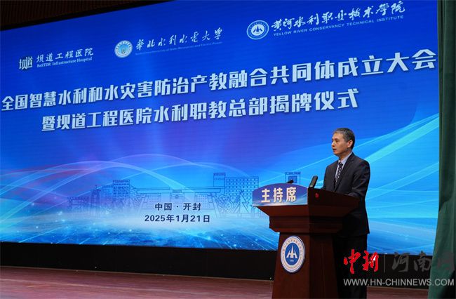 共同體發(fā)起單位、壩道醫(yī)院水利職教總部代表胡昊講話。他指出,共同體由匯集國內(nèi)外高端專家團(tuán)隊(duì)、企業(yè)、科研院所和行業(yè)學(xué)會(huì)優(yōu)勢(shì)力量的壩道工程醫(yī)院、水利類一流本科院校的華北水利水電大學(xué)、全國“雙高計(jì)劃”A檔建設(shè)單位的黃河水利職業(yè)技術(shù)學(xué)院共同發(fā)起,實(shí)現(xiàn)了強(qiáng)強(qiáng)聯(lián)合。壩道工程醫(yī)院水利職教總部的成立將充分發(fā)揮壩道工程醫(yī)院在行業(yè)中的領(lǐng)航與示范作用,水利職教分院間將開展更廣泛的合作、更多元的對(duì)接、更深層的協(xié)同,實(shí)現(xiàn)多方資源優(yōu)化配置與高效利用。共同體的成立和水利職教總部的揭牌標(biāo)志著我們?cè)谔剿鳟a(chǎn)教融合新模式、推動(dòng)水利職業(yè)教育高質(zhì)量發(fā)展的道路上又邁出了堅(jiān)實(shí)的一步,將推動(dòng)校企、校際深度協(xié)同,加快教育鏈、人才鏈與產(chǎn)業(yè)鏈、創(chuàng)新鏈的有效銜接,促進(jìn)產(chǎn)教融合、科教融匯,促進(jìn)水利新質(zhì)生產(chǎn)力發(fā)展。
