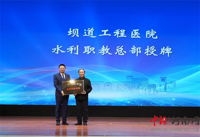 王復(fù)明院士和胡昊校長為壩道工程醫(yī)院水利職教分院授牌