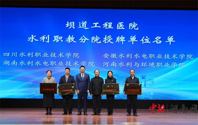 與會(huì)領(lǐng)導(dǎo)共同啟動(dòng)了全國智慧水利和水災(zāi)害防治產(chǎn)教融合共同體,隨后舉行了壩道工程醫(yī)院水利職教總部揭牌及水利職教分院授牌儀式。