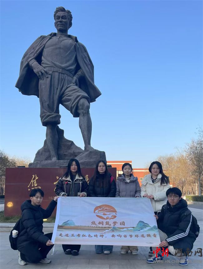 午后,團(tuán)隊來到焦裕祿文化交流中心。成員們采訪了不同年齡段的群眾。老人飽含熱淚講述焦裕祿的奉獻(xiàn),孩子們分享從焦裕祿書記事跡中學(xué)到的精神,這些聲音共同匯聚成對焦裕祿精神的深情禮贊,彰顯其在新時代的鮮活生命力。隨后,團(tuán)隊前往焦桐廣場,仰望焦裕祿親手種下的枝繁葉茂的泡桐樹。樹旁,飄揚的旗幟與干部學(xué)院的焦裕祿雕像遙相呼應(yīng),激勵著蘭考人傳承精神、不懈奮斗,同學(xué)們在此合影留念,銘記傳承之志。