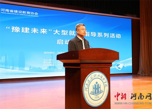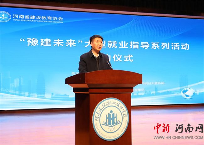 在啟動儀式上,省教育廳學生處四級調研員錢鵬俊作講話。他指出,此次活動是貫徹落實省委、省政府關于就業(yè)、創(chuàng)業(yè)決策部署的具體行動,是推動建筑行業(yè)人才培養(yǎng)的關鍵舉措。他強調,就業(yè)是民生之本,河南建院作為全省唯一一所公辦建筑類高等職業(yè)學校,堅持以“雙高”工程建設為抓手,持續(xù)深化“三教”改革,緊密結合市場需求,拓寬就業(yè)渠道,優(yōu)化專業(yè)設置,加強實踐教學,進一步提高大學生綜合素質和技能。希望學校以辦好人民滿意的教育為目標,始終把就業(yè)工作當作學校生存與發(fā)展的生命線,在幫助學生樹立正確的職業(yè)規(guī)劃意識,明確專業(yè)學習方向,掌握實用就業(yè)技能,培養(yǎng)學生綜合素質和創(chuàng)造能力的同時,積極搭建技術協(xié)同創(chuàng)新平臺,努力為畢業(yè)生求職就業(yè)保駕護航。鼓勵同學們在強國建設的征程中磨礪成長,展現(xiàn)青年學子的風采與擔當。