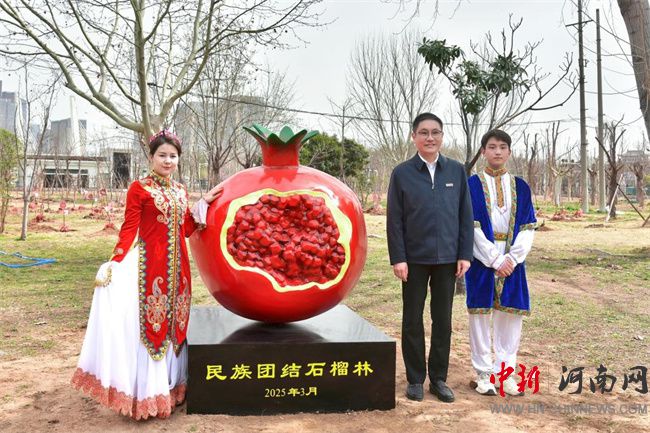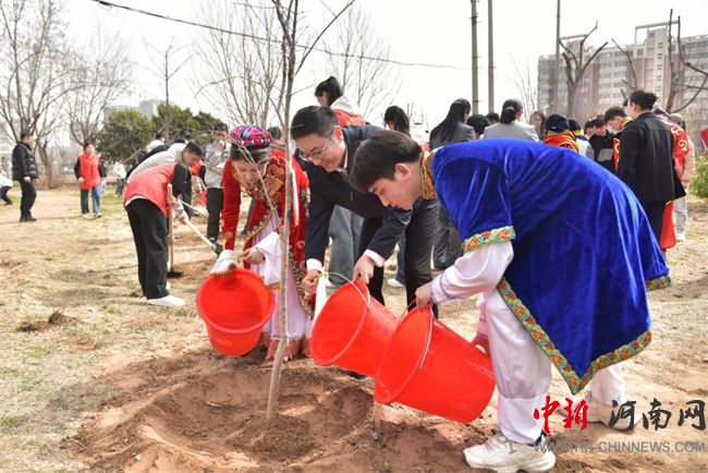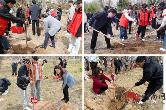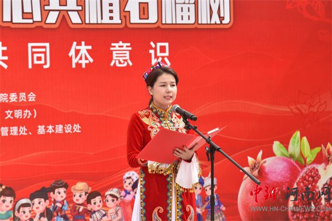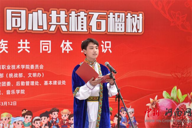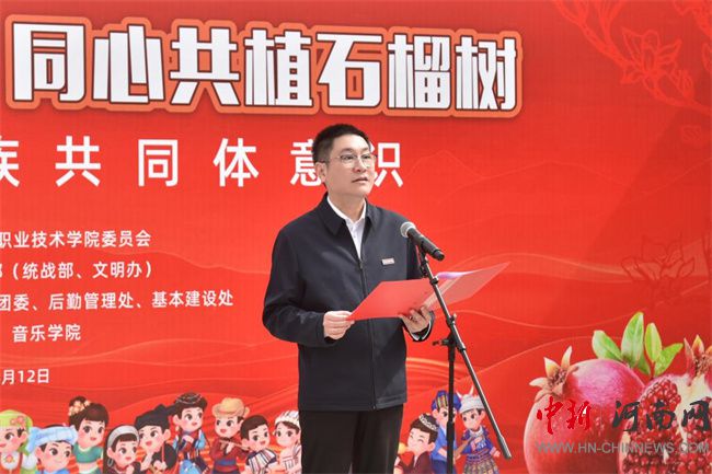 中新河南網(wǎng)3月13日電(隋納新) 3月12日是全國(guó)第47個(gè)植樹節(jié),當(dāng)天,河南職業(yè)技術(shù)學(xué)院舉行了“中華民族一家親,同心共植石榴樹”活動(dòng)。校黨委書記厲勵(lì)出席活動(dòng),為學(xué)生講授鑄牢中華民族共同體意識(shí)思政課,并為“民族團(tuán)結(jié)石榴林”揭牌。校黨委委員、副校長(zhǎng)任楓軒,黨政辦公室、黨委宣傳部、黨委學(xué)生工作部、校團(tuán)委、后勤管理處、基本建設(shè)處和各二級(jí)學(xué)院相關(guān)負(fù)責(zé)人,以及120余名各民族師生代表參加活動(dòng)。校黨委副書記、工會(huì)主席田華主持活動(dòng)。