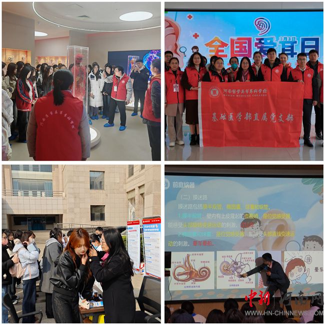 開(kāi)展全國(guó)愛(ài)耳日暨學(xué)雷鋒志愿活動(dòng)。3月6日,基礎(chǔ)醫(yī)學(xué)部直屬黨支部聯(lián)合河南省第二人民醫(yī)院耳鼻喉科,以“健康聆聽(tīng),無(wú)礙溝通”為主題開(kāi)展科普義診活動(dòng)。通過(guò)義診篩查、科普講座、沉浸式體驗(yàn)、參觀人體生命科學(xué)館等形式,500余名師生普及了聽(tīng)力健康知識(shí)。郭丹教授系統(tǒng)剖析噪音、藥物等多重致聾因素,強(qiáng)調(diào)“三級(jí)預(yù)防”理念;邵玉普副教授通過(guò)講解耳解剖結(jié)構(gòu),警示游泳嗆水、不當(dāng)采耳等生活隱患;省二院王帥醫(yī)生結(jié)合臨床案例,解析耳聾早期信號(hào)及“黃金72小時(shí)”救治策略,并推廣“60-60-60”護(hù)耳法則;顒(dòng)通過(guò)“科普精準(zhǔn)化、體驗(yàn)沉浸化、服務(wù)人性化”的創(chuàng)新模式,開(kāi)展了一場(chǎng)有溫度、有深度的健康活動(dòng)。有效增強(qiáng)了師生聽(tīng)力健康意識(shí),營(yíng)造了關(guān)愛(ài)聽(tīng)障群體的校園氛圍。