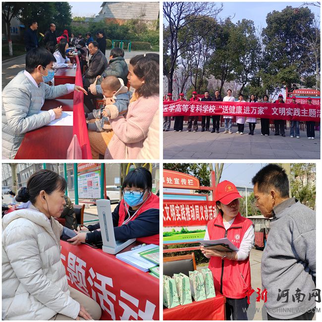 開(kāi)展“送健康 進(jìn)萬(wàn)家”文明實(shí)踐主題活動(dòng)。3月6日,我校師生赴校地結(jié)對(duì)幫扶點(diǎn)開(kāi)展“送健康 進(jìn)萬(wàn)家”文明實(shí)踐主題活動(dòng),為泌陽(yáng)縣花園街道北曹莊群眾做健康咨詢(xún)、測(cè)量血壓、推拿按摩、發(fā)放健康宣傳資料和開(kāi)展健康素養(yǎng)調(diào)查問(wèn)卷等活動(dòng),將專(zhuān)業(yè)醫(yī)療服務(wù)和健康知識(shí)送到群眾“家門(mén)口”,引導(dǎo)廣大居民養(yǎng)成健康生活習(xí)慣,成為健康第一責(zé)任人。以實(shí)際行動(dòng)踐行雷鋒精神,助力鄉(xiāng)村振興;顒(dòng)現(xiàn)場(chǎng)設(shè)置內(nèi)科、外科、兒科等義診區(qū)域,并特別設(shè)置了醫(yī)療按摩區(qū)、健康宣教區(qū)。累計(jì)服務(wù)群眾120余人次,發(fā)放健康手冊(cè)200余份,調(diào)查問(wèn)卷110余份。當(dāng)?shù)鼐用窦娂姳硎,這樣的活動(dòng)“貼心、實(shí)在”,希望今后能常態(tài)化開(kāi)展。