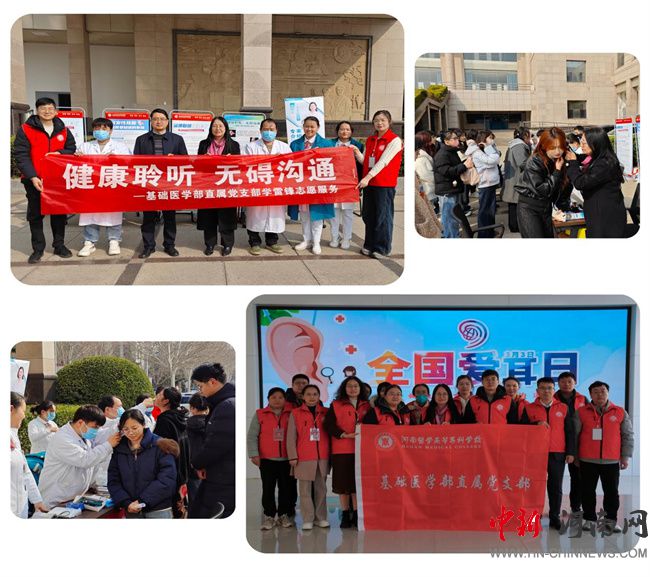 中新河南網(wǎng)3月24日電(文·圖/劉斌) 在第26個全國愛耳日與學雷鋒紀念日、中國青年志愿者服務日交匯之際,河南醫(yī)學高等?茖W校基礎醫(yī)學部直屬黨支部聯(lián)合河南省第二人民醫(yī)院耳鼻喉科,以“健康聆聽,無礙溝通”為主題,黨員志愿服務與健康科普相結合,開展科普義診活動。校黨委副書記、工會主席李鵬濤出席義診活動。通過義診篩查、科普講座、沉浸式體驗、參觀人體生命科學館等形式,為500余名師生普及了聽力健康知識。
